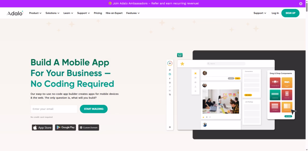CTA: Start building your mobile or web app today with Adalo and bring your ideas to life in days, not months.