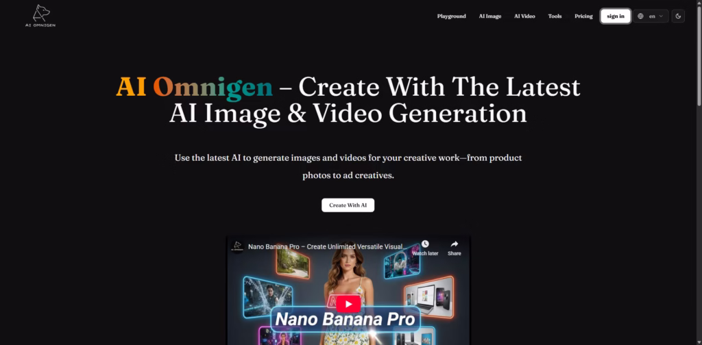 AI Omnigen is an all-in-one AI creative platform that helps you edit and generate images and videos using cutting-edge AI models.