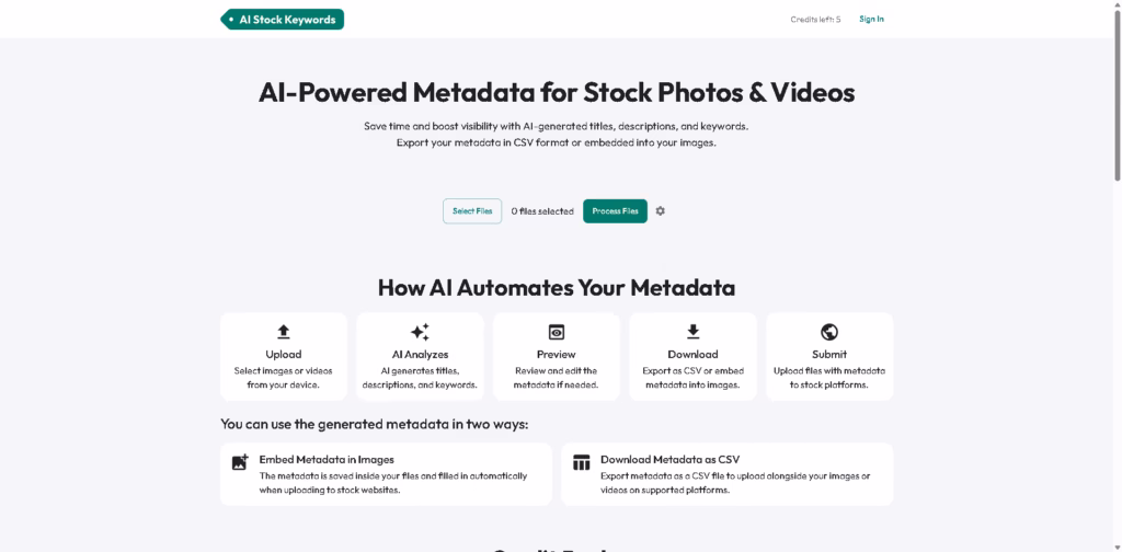 - AI Metadata Generation – Creates optimized titles, descriptions, and keywords automatically.