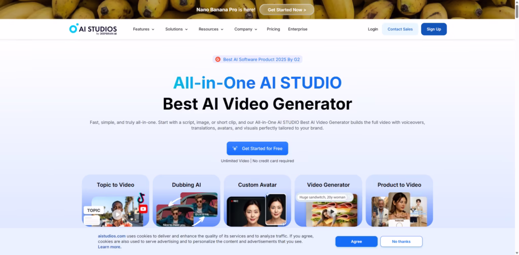 AI Studios lives up to its “all-in-one” promise. It combines AI avatars, video generation, dubbing, editing, and collaboration into a single studio that actually simplifies video creation instead of adding more tools.