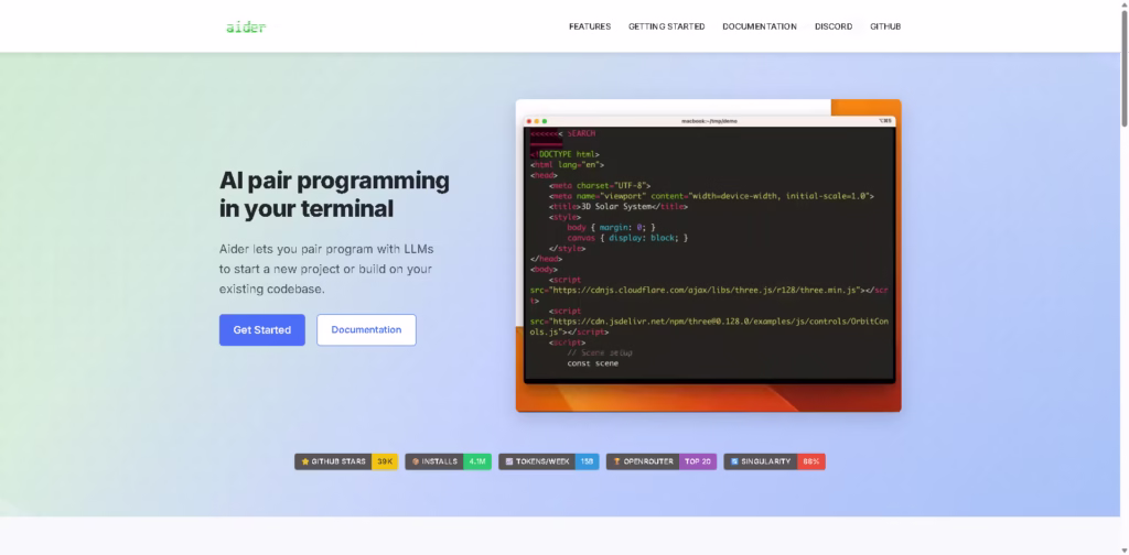Aider is an AI-powered coding assistant that acts like a pair programmer in your terminal or IDE.