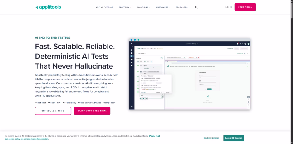 Applitools is an AI-powered end-to-end testing platform that helps teams test web, mobile, desktop apps, and PDFs with human-like accuracy at machine speed.