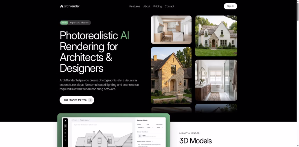 ArchRende is an AI-powered rendering tool for architects and designers, turning 3D models or drawings into photorealistic visuals in seconds.