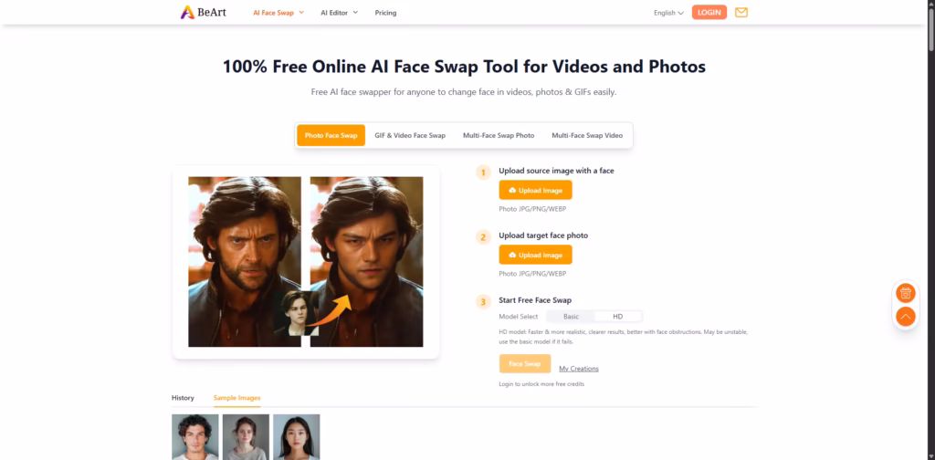 If you want to make your content stand out with fun or professional face swaps, BeArt AI is a must-try online tool.