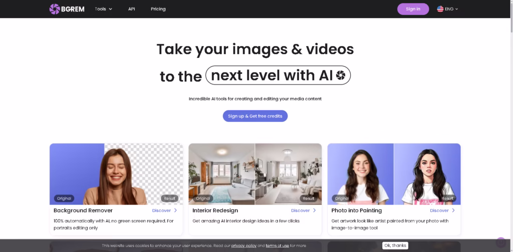 BGREM AI is an all-in-one AI creative platform that helps you create, edit, and transform images and videos in just a few clicks.