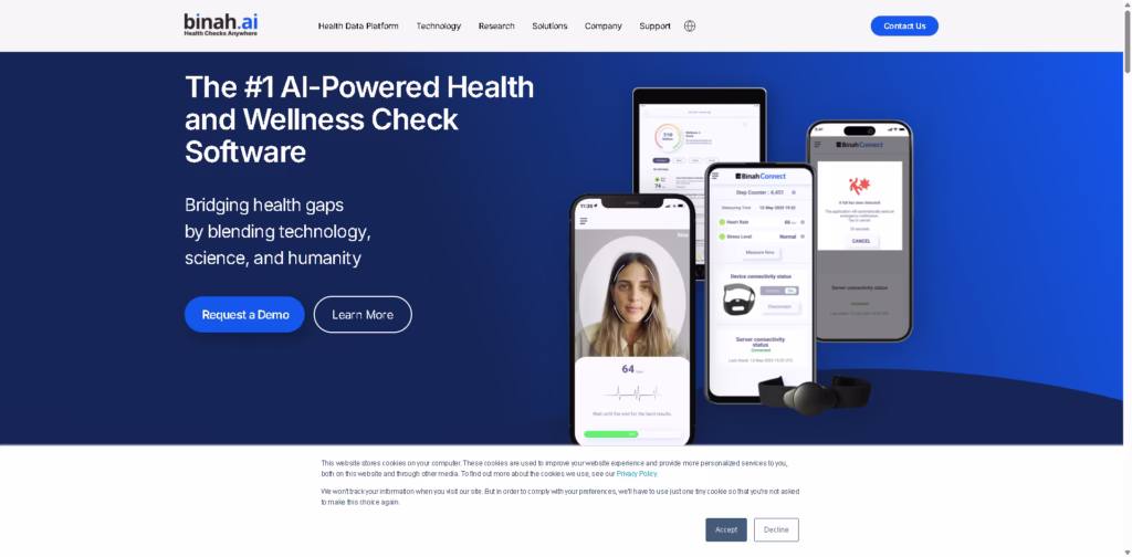 Binah.ai is a groundbreaking solution that bridges technology, science, and human care. Its AI-driven, contactless approach to health monitoring is fast, accurate, and privacy-conscious, making it ideal for healthcare, insurance, and wellness industries.