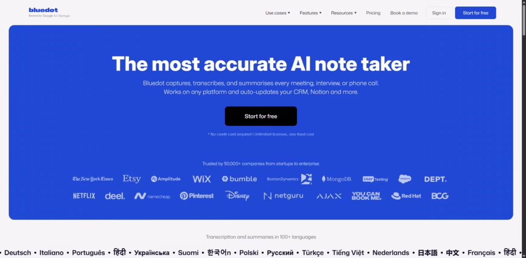 Bluedot is perfect for anyone who wants to save time, reduce meeting fatigue, and get accurate notes without the hassle of bots.