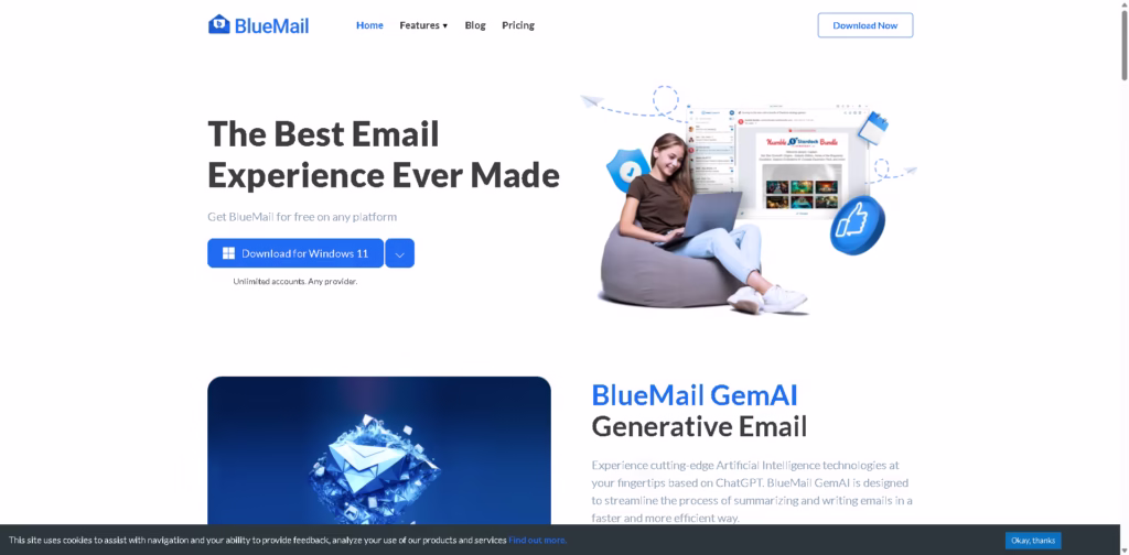 With advanced features like AI-powered email writing and summarization through BlueMail GemAI, it’s designed to make emailing faster, smarter, and more organized.