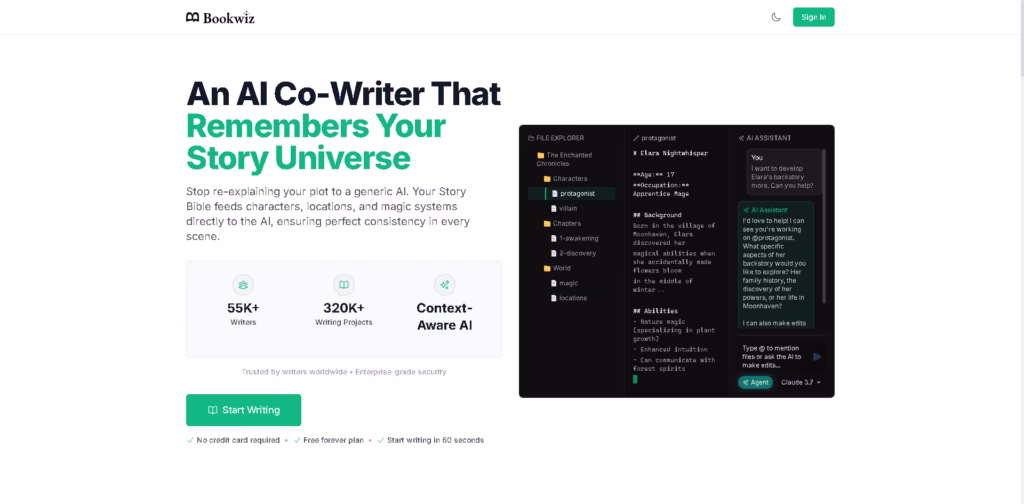 Bookwiz isn’t just another AI writing tool-it’s a professional co-writer that truly understands your story universe.