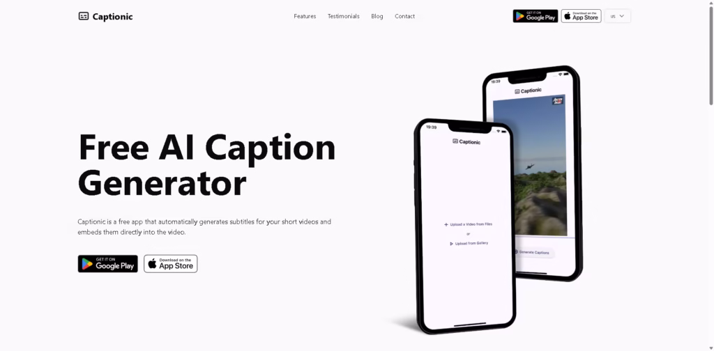 Captionic is a free AI-powered caption generator app that automatically creates and embeds subtitles directly into your short-form videos.