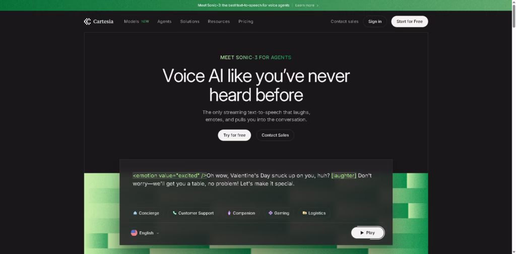 Whether for AI agents, assistive systems, or immersive audio experiences, Cartesia provides the tools and flexibility to deploy them quickly and at scale.