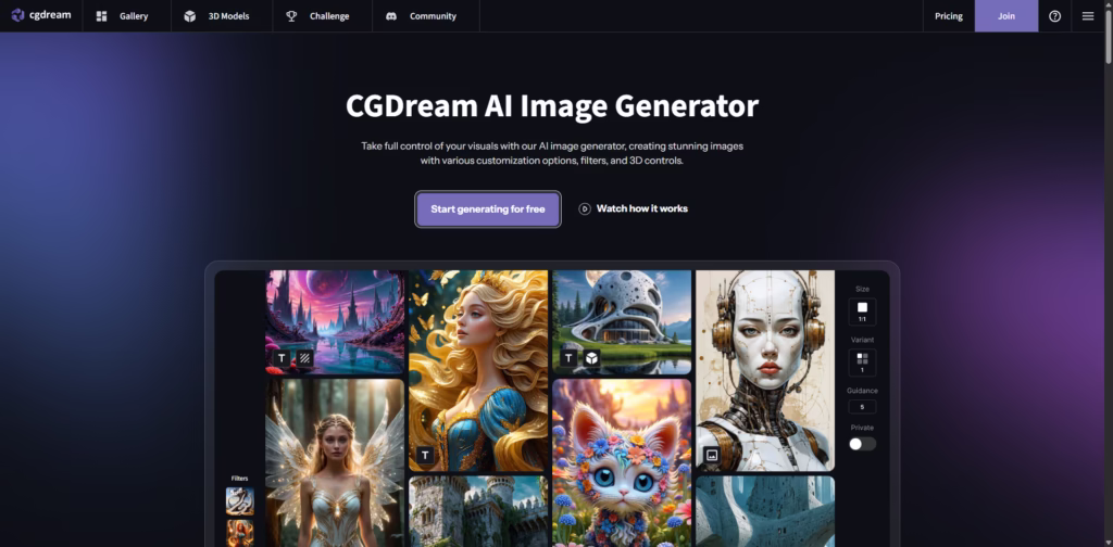 CGDream Image Generator is a powerful AI tool for creating stunning visuals from text, images, or even 3D models.