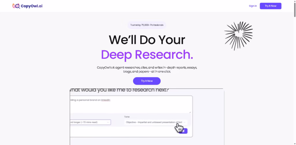 CopyOwl is an AI-powered research assistant that takes the headache out of writing. It can research, cite, and generate fully polished reports, essays, blogs, and business documents-all in one click-saving you hours while delivering professional, ready-to-use content.
