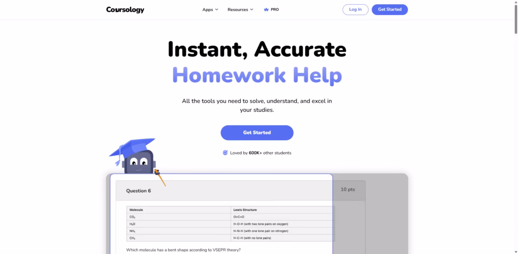 Coursology is an AI-powered homework helper that gives students instant answers, explanations, and study support across a wide range of subjects.