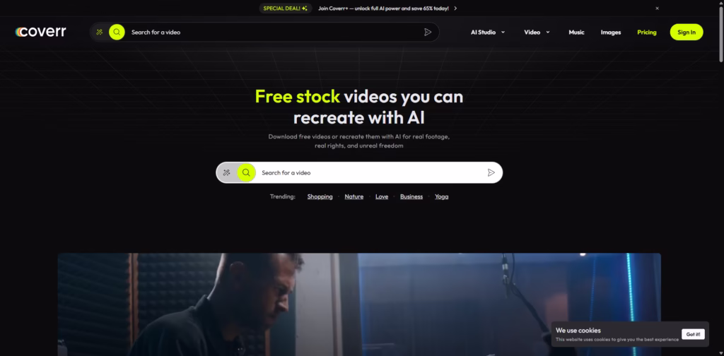 Coverr is a versatile platform that combines free stock footage, music, and AI video creation. Its no-attribution, royalty-free model makes it ideal for creators of all levels.