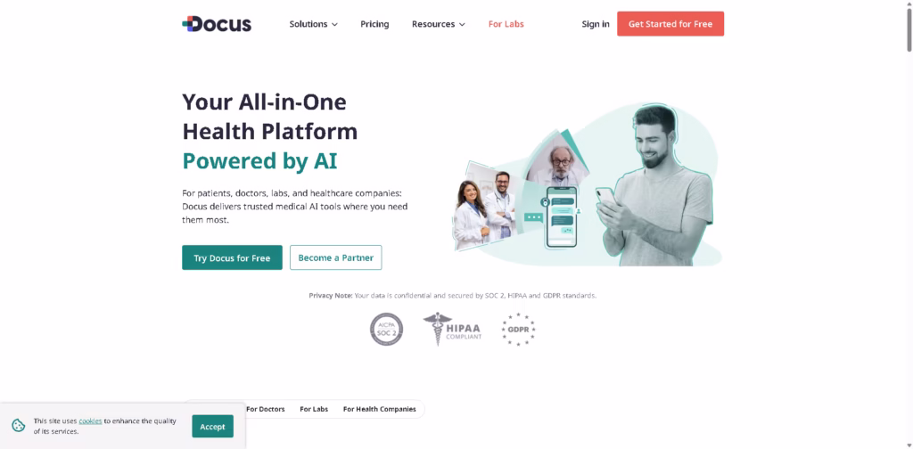 With strong security, regulatory compliance, and multi-platform solutions, Docus is a reliable choice for anyone looking to bring AI into healthcare responsibly.