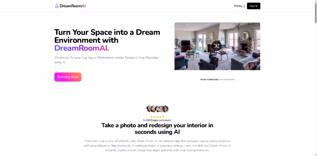 DreamRoomAI is an AI-powered interior design tool that helps you redesign rooms simply by uploading a photo.