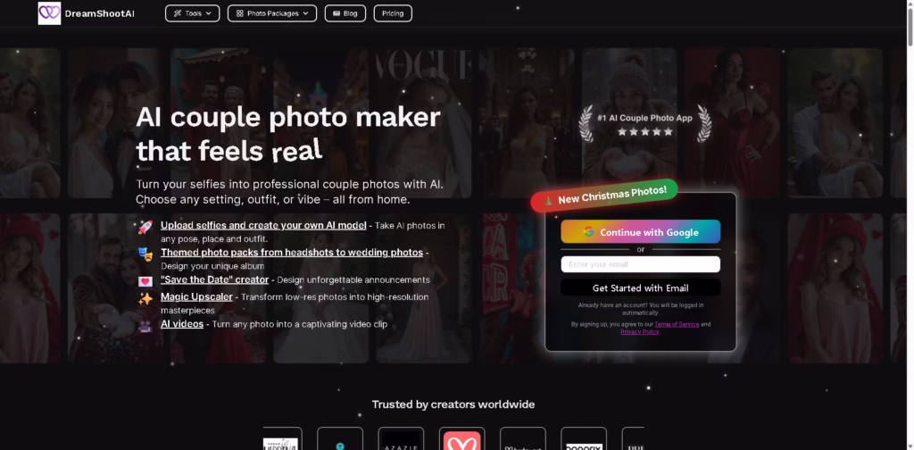 DreamShootAI is an AI-powered couple and personal photo generator that transforms selfies into professional-grade photos and videos.