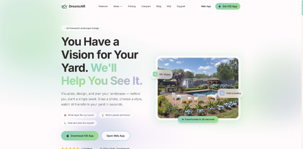 DreamzAR is an AI-powered landscape and garden design app that lets you visualize and plan your yard before planting a single seed.