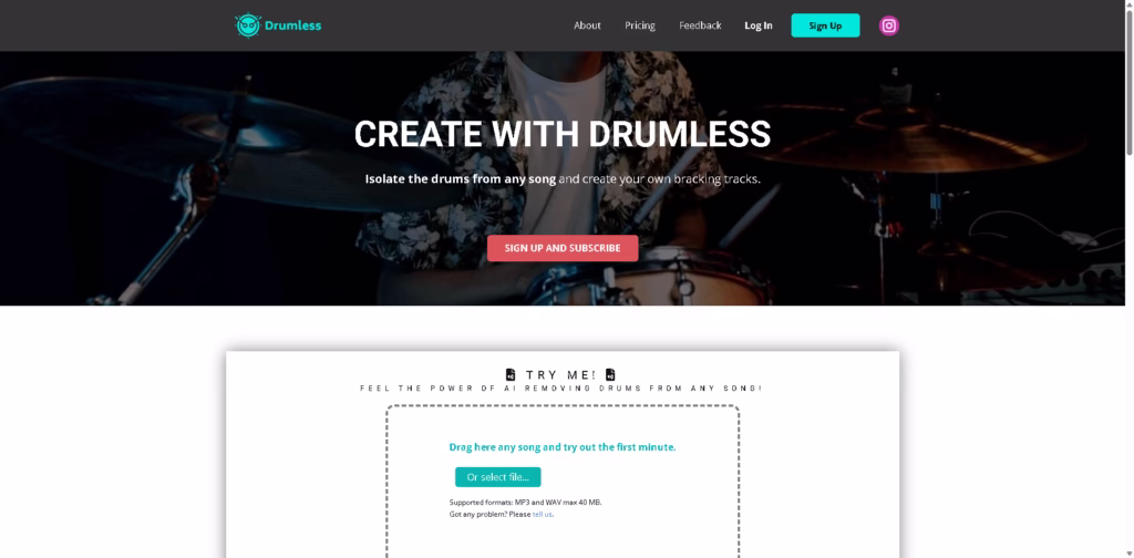 Drumless is an AI-powered tool that removes drums from any song, letting drummers create custom backing tracks to play along with.