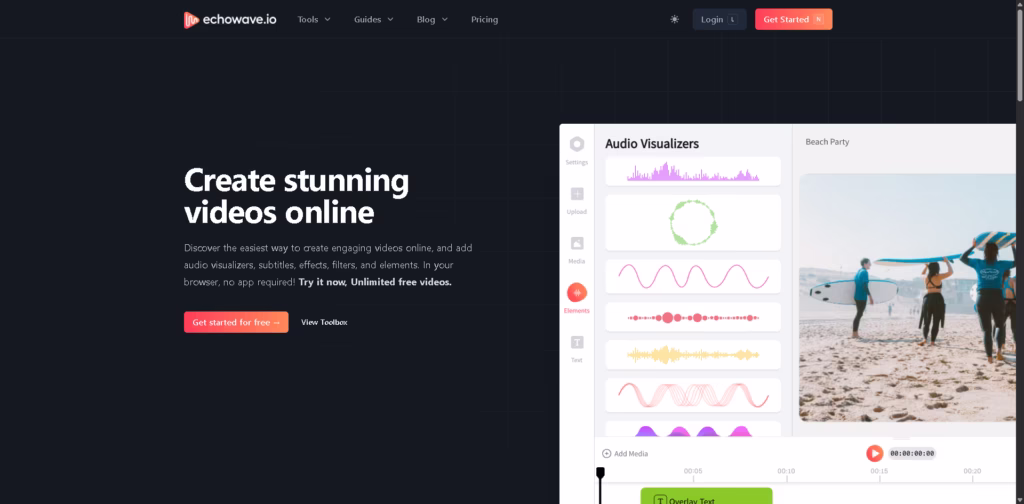 EchoWave is a browser-based video creation platform that turns audio into visually engaging videos.