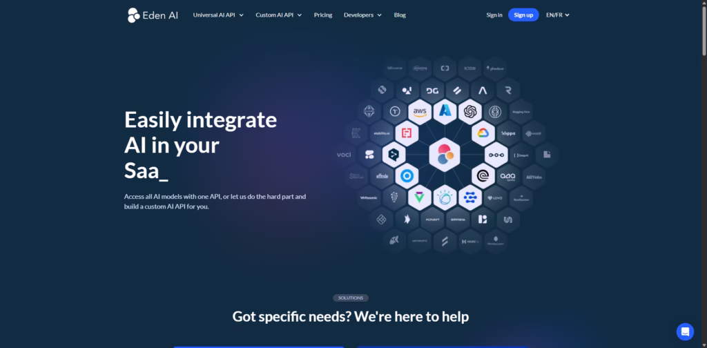 Eden AI shines by removing the mess from AI integration. Whether you want quick access to multiple AI models or a fully custom-built AI API designed around your product, Eden AI gives you flexibility without the overhead.