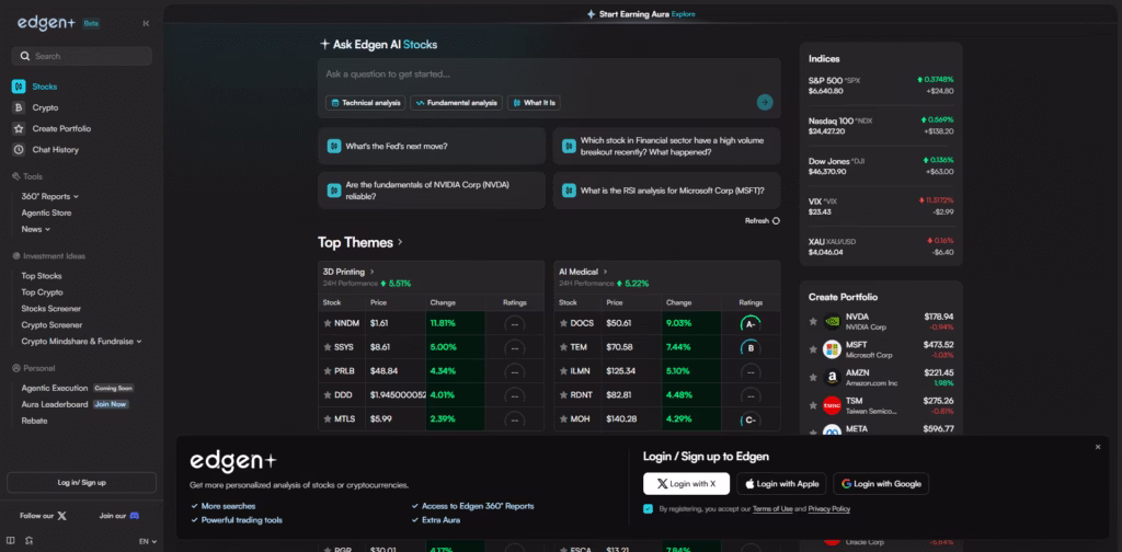 Edgen AI is an investment platform that uses artificial intelligence to help you analyze stocks and cryptocurrencies.
