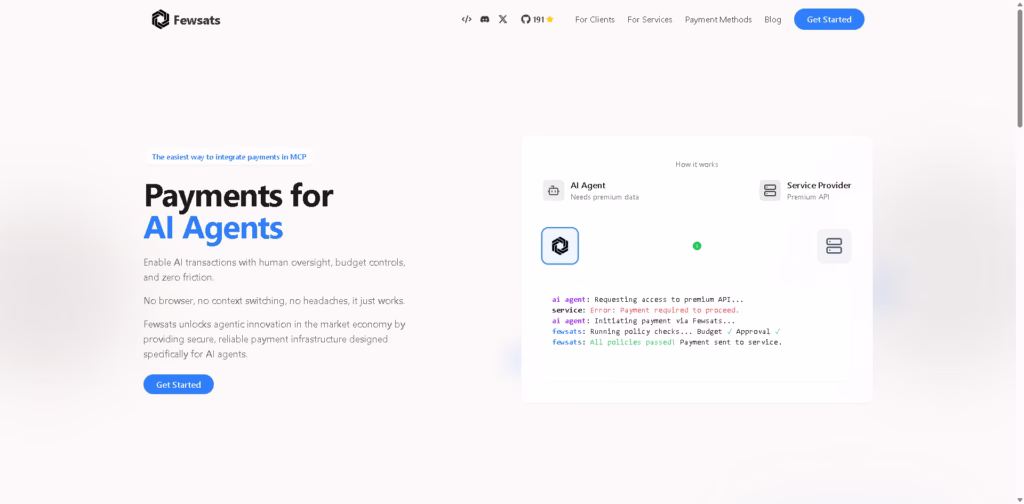 Fewsats is a payment platform built for AI agents, allowing them to make transactions securely, seamlessly, and under human oversight.