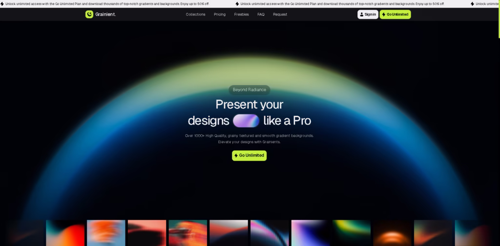 - Unlimited Access Plan: Go Unlimited plan gives access to thousands of premium gradients and backgrounds with up to 50% off.