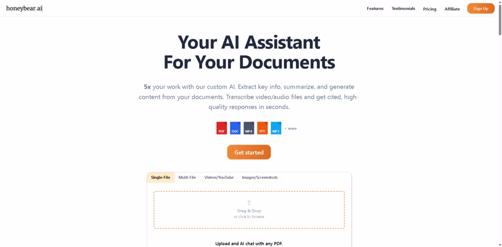Honeybear.ai is an all-in-one AI assistant that genuinely simplifies working with documents and multimedia content.