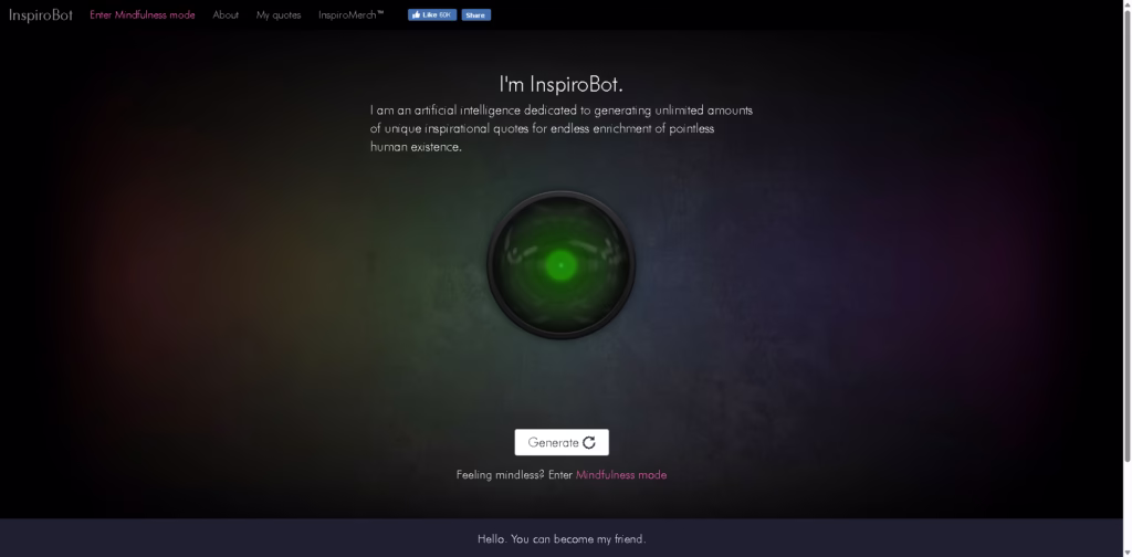 Try it out, click generate, and see what existential wisdom (or nonsense) the bot has in store for you.