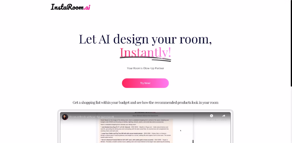 InstaRoom makes interior design effortless, blending AI creativity with practical shopping guidance. Perfect for anyone wanting a stylish, budget-friendly room makeover in seconds.