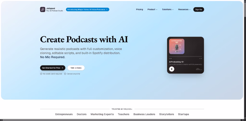 If you want to produce professional podcasts fast, scale globally, and repurpose content for social media, Jellypod is a powerhouse AI studio worth trying.