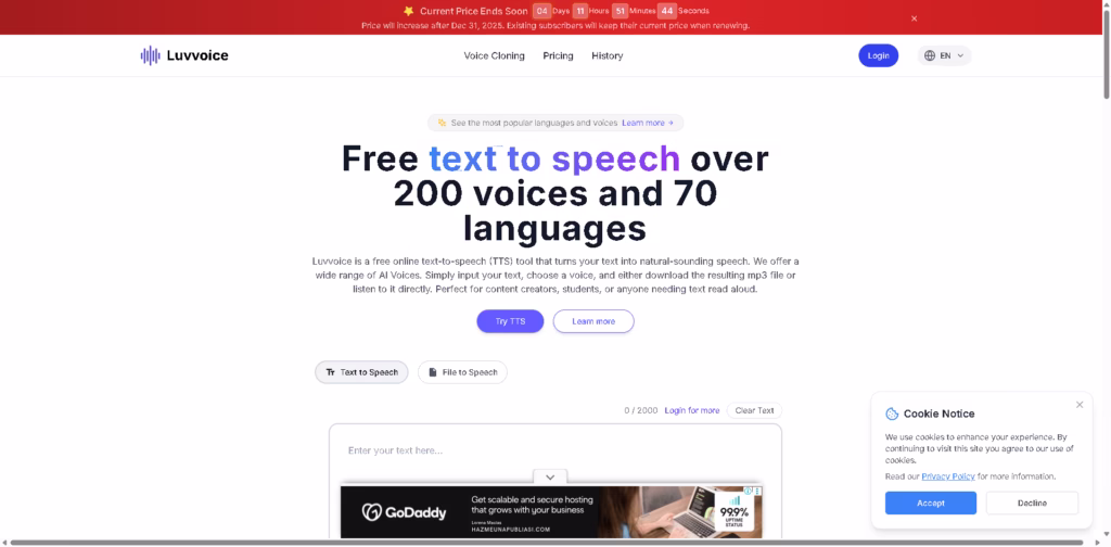 Luvvoice is an AI-powered text-to-speech (TTS) platform that converts text and documents into realistic, natural-sounding speech.