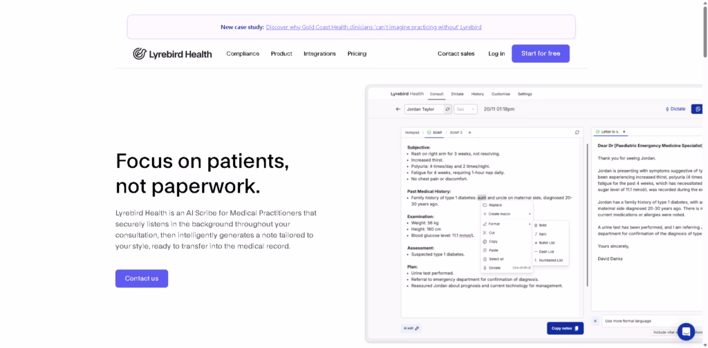 For any medical professional looking to reduce paperwork and spend more time with patients, Lyrebird Health is a must-have tool.