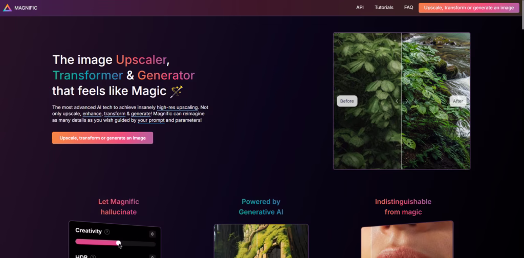 Magnific AI stands out because it doesn’t just upscale-it transforms. With powerful AI, creative controls, and a magical level of detail, it opens the door to new artistic possibilities.