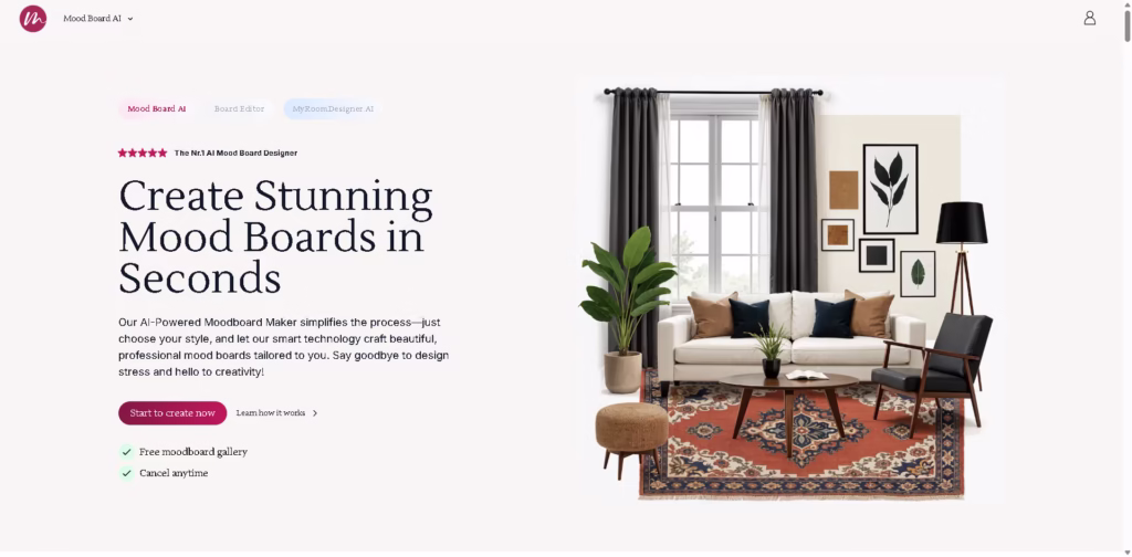 - One-Click Mood Board Creation: Generate professional boards instantly from your ideas.