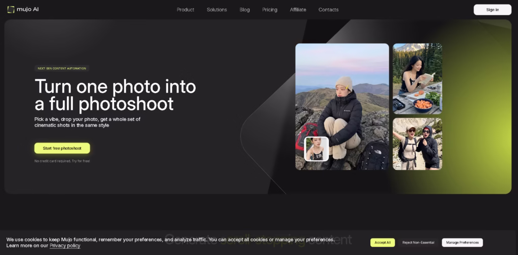 Mujo is an AI-powered content automation tool that transforms a single photo into an entire styled photoshoot.