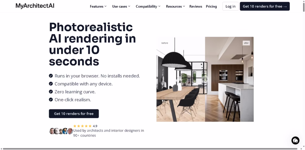 MyArchitectAI focuses on speed, simplicity, and accessibility. Instead of spending hours or days rendering scenes with heavy software, users can generate realistic visuals in seconds directly in the browser.