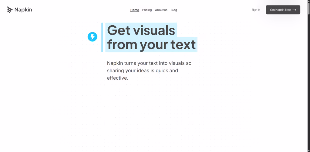 Napkin is a simple yet powerful tool for transforming text into visuals, making communication more effective and creative.