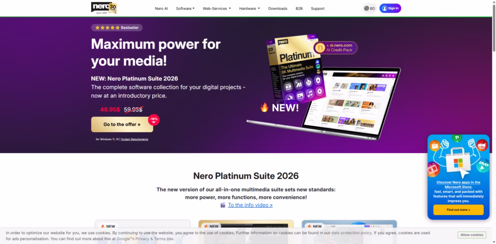 Nero Platinum Suite 2026 is a powerful, user-friendly media suite that makes creating and managing digital content effortless. With AI enhancements and a full range of editing tools, it’s ideal for creators of all levels. Try it now and elevate your media projects!