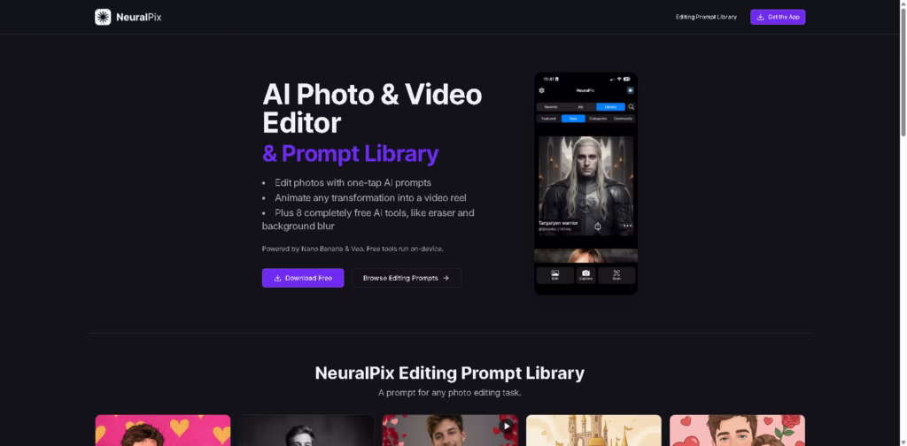 NeuralPix is a mobile AI photo and video editor that lets you transform images using ready-made prompts-no editing skills needed.