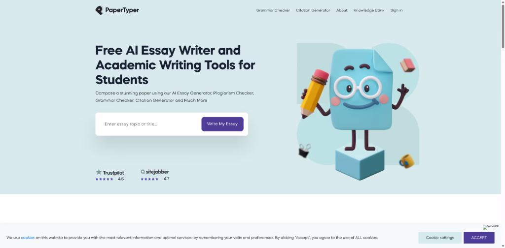 PaperTyper is an all-in-one AI-powered academic writing platform that helps students generate essays, check grammar, detect plagiarism, and create citations-all in one place.