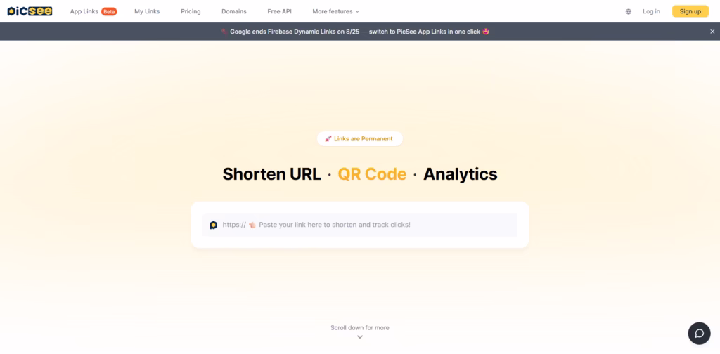 PicSee is an all-in-one link management tool that lets you shorten URLs, generate QR codes, track clicks, and fully customize your links for marketing and social media.