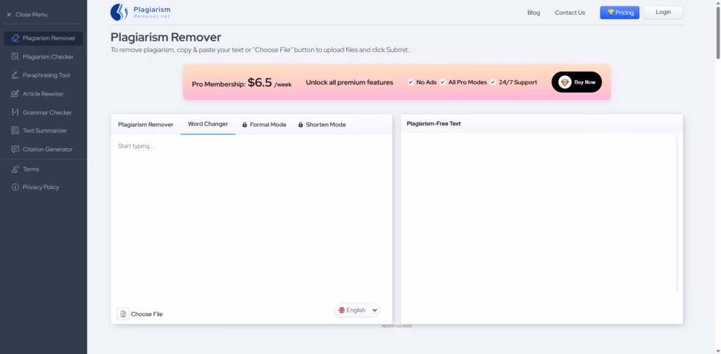- Multiple Rewrite Modes: Choose from Plagiarism Remover, Word Changer, Formal, or Shorten modes based on your goal.