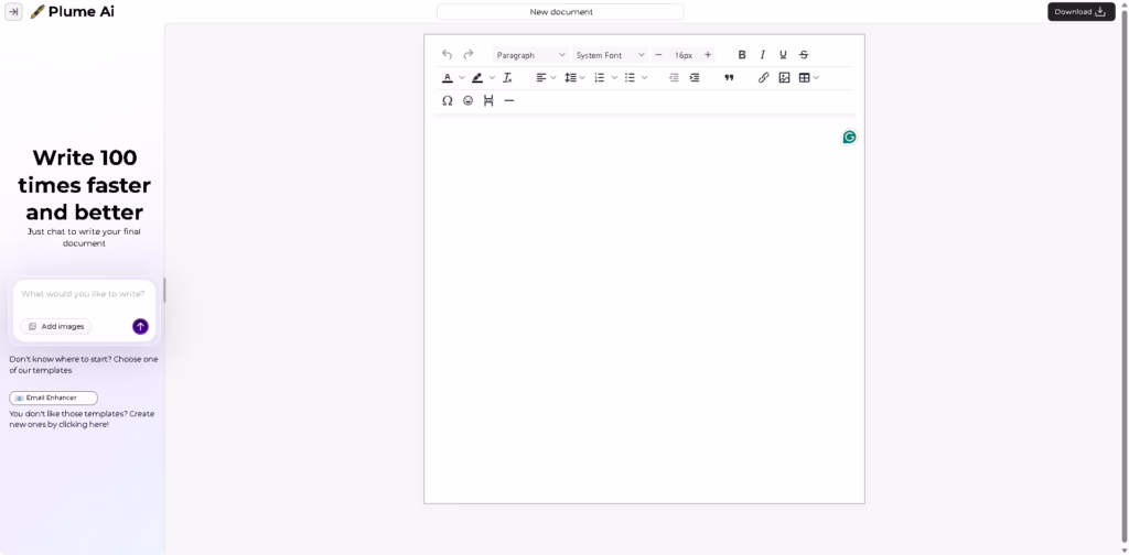 Plume AI keeps things simple-and that’s its biggest strength. Instead of complex tools, it focuses on helping you write faster through conversation.