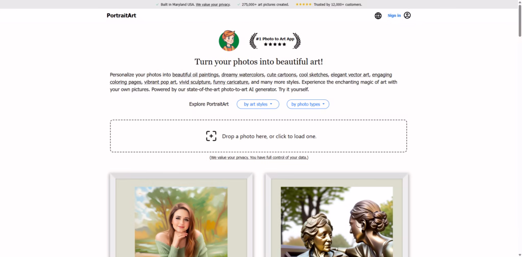 PortraitArt is an AI-powered app that transforms your ordinary photos into stunning works of art.