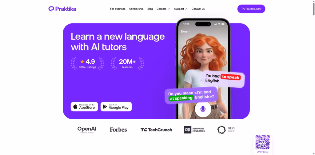 Praktika is an AI-powered language learning app designed to help people practice speaking with realistic AI tutors.