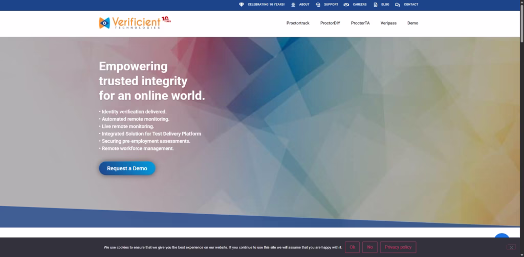 Proctortrack by Verificient Technologies is an AI-powered platform designed to ensure exam integrity and identity verification for online, in-classroom, and remote assessments.