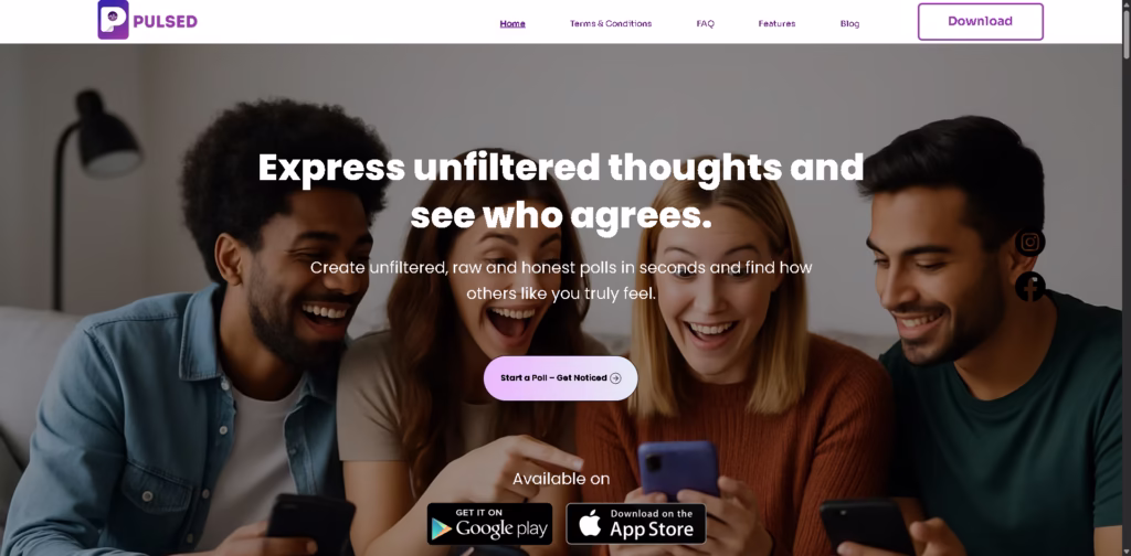 Pulsed turns opinions into a game-making polling fun, competitive, and meaningful. Instead of shouting into the void, users earn recognition, track influence, and see instant feedback from real people.